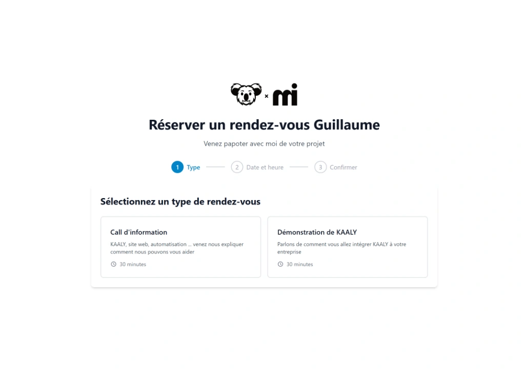 Configurez vos motifs de rendez-vous, définissez leur durée et laissez vos clients choisir le créneau qui leur convient le mieux.
